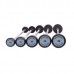 Набор состоит из 5 штанг: 10, 15, 20, 25 и 30 кг.