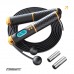Перед тренировкой настройте длину троса под свой рост, зафиксируйте фиксаторы и включите счетчик. Выберите нужный режим - проводной или беспроводной. Дисплей отображает количество прыжков, калории, время и вес тела. Таймер работает только во время активных движений.